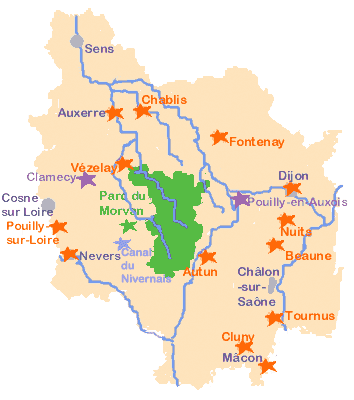Près de : Autun Auxerre Beaune ChablisClamecy Cluny Côte de NuitsCosne-sur-Loire Dijon Abbaye de Fontenay Mâcon Nevers Parc régional du Morvan Pouilly-en-Auxois Pouilly-sur-Loire Tournus Vézelay